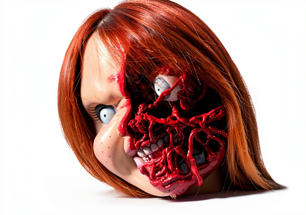 Child's Play red action figure with remote control on a table