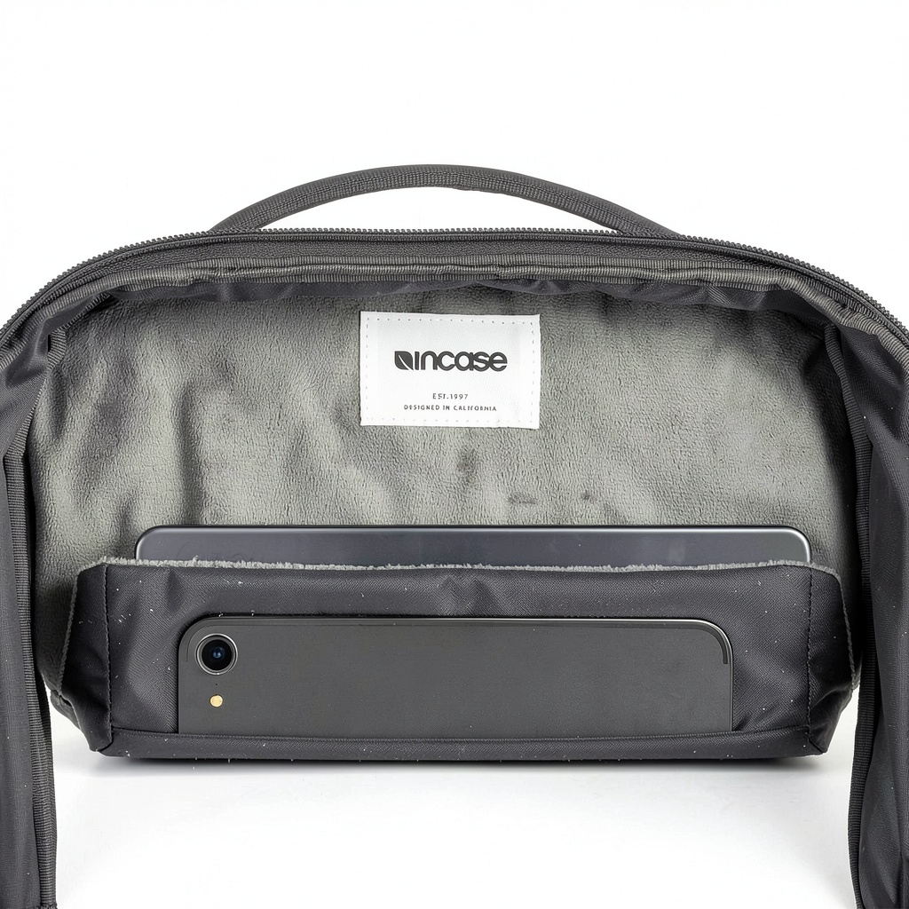 Incase prioritises user-centric design and sustainability, setting the A.R.C Daypack apart from standard laptop bags. By utilising recycled materials, we reduce environmental impact without compromising on durability or style. The inclusion of advanced features like RFID protection and discreet AirTag pockets reflects our commitment to security and innovation. Each backpack undergoes rigorous quality checks to ensure it meets high performance standards, offering peace of mind through reliable craftsmanship and thoughtful details that enhance everyday convenience.